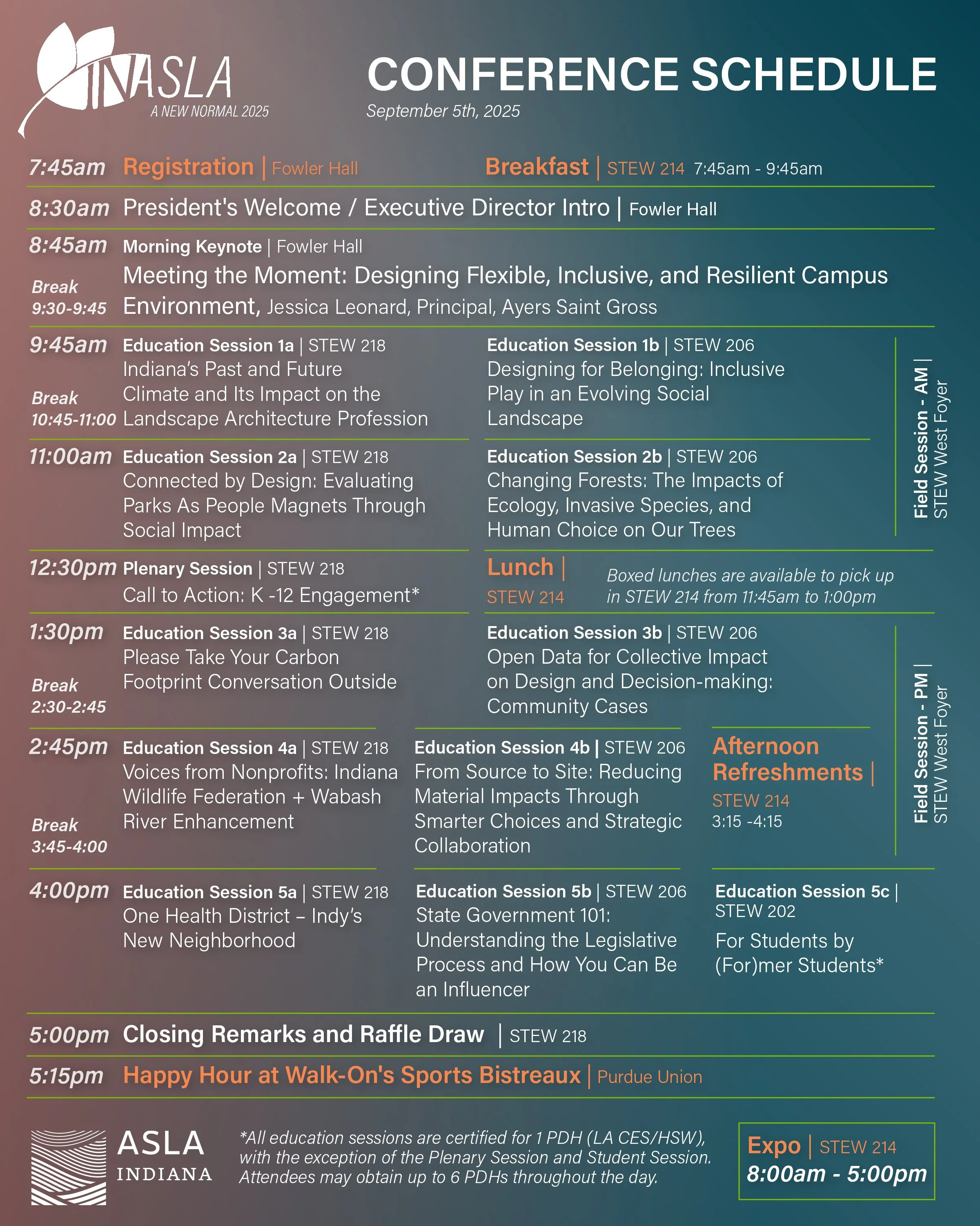 Back by popular demand, this returning tradition from last year invites you to a candid, students-only panel at the INASLA Conference. Recent landscape architecture graduates from Purdue and Ball State will share how their lives have changed since graduation, and what they wish they had known while preparing for co-ops, internships, and entry-level work.